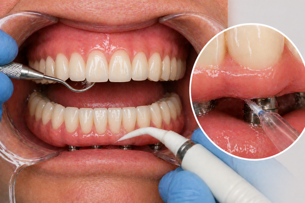 In alcuni casi, la struttura protesica viene temporaneamente rimossa durante le sedute di igiene dentale per permettere una pulizia più approfondita.